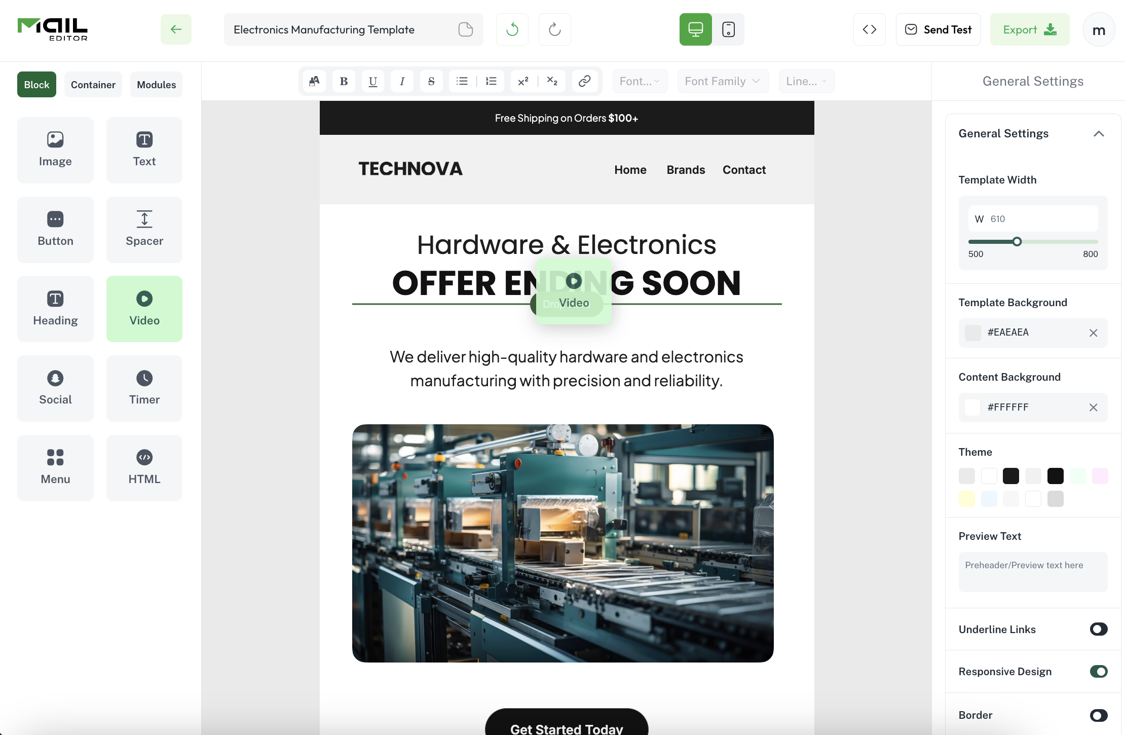 Maileditor gives you the tools to build and edit email templates and turn them into campaign ready designs in minutes. Create responsive Mailchimp templates without coding and move from idea to finished email faster.