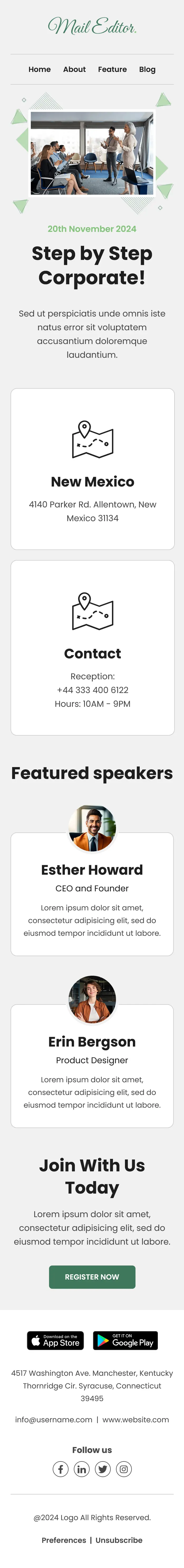 The template is mobile friendly, fully customizable in MailEditor, and exportable as clean HTML for seamless integration with your email platform.